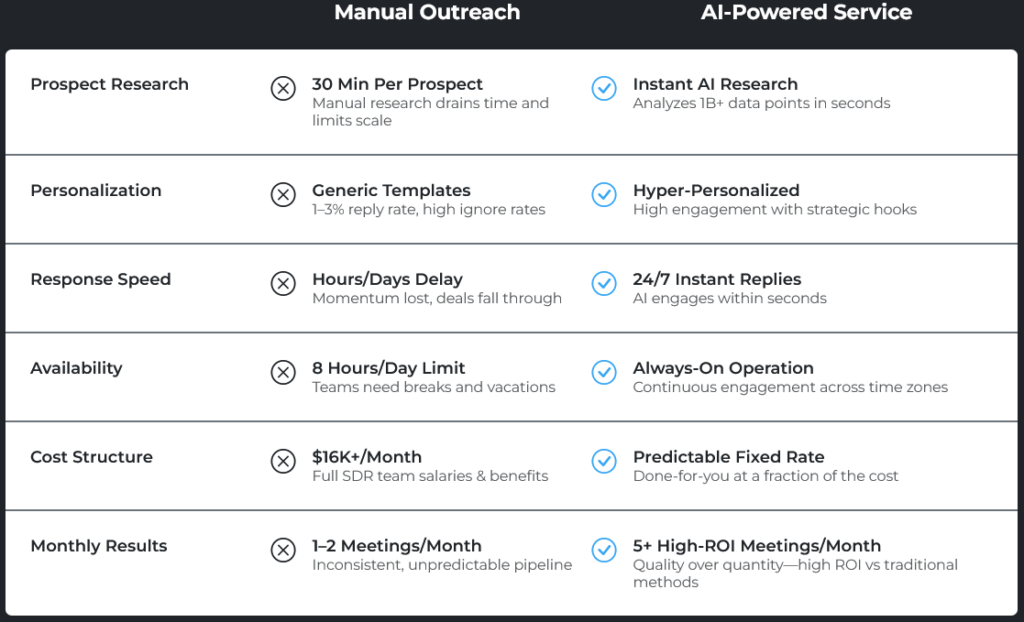 - Personalized research for every prospect (not generic spam)